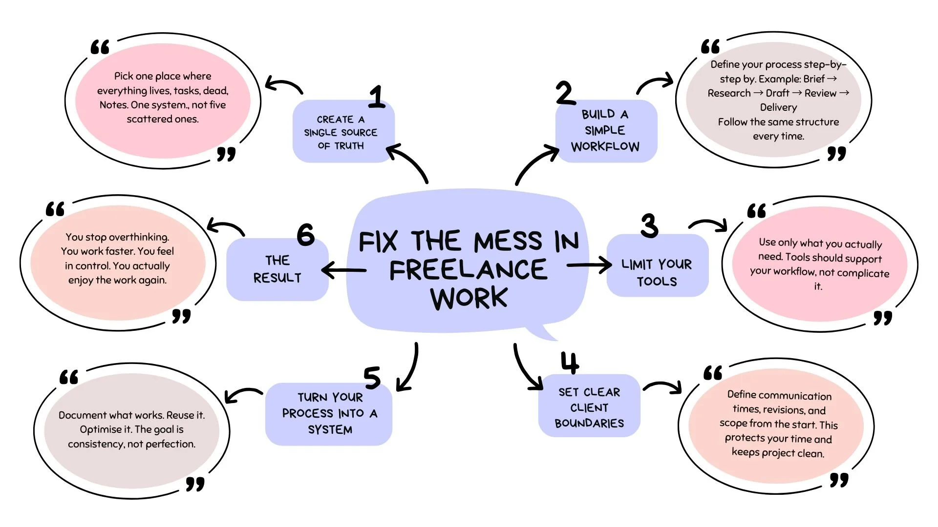 No repeatable process 👉🏻 You reinvent your workflow every time you start a new project. That wastes time and drains energy.